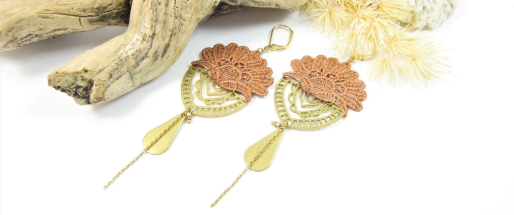 boucles d'oreilles fantaisie marron